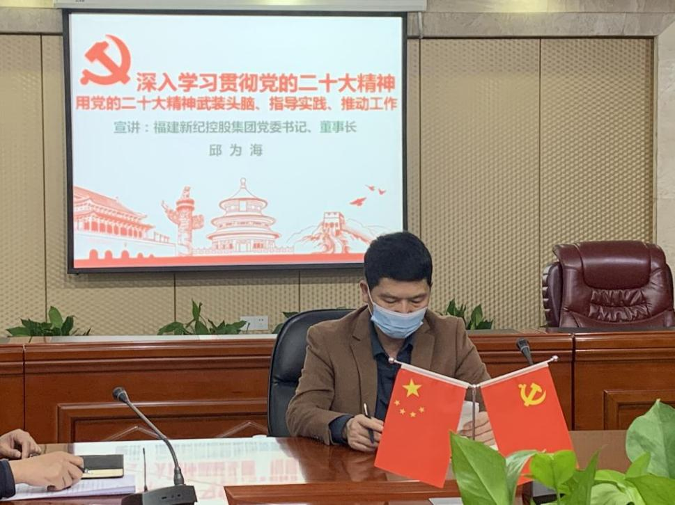 11月21日下午,由福建新纪控股集团党委书记、董事长邱为海宣讲的《深入学习贯彻党的二十大精神——用党的二十大精神武装头脑、指导实践、推动工作》主题党课,在新纪集团总部四楼第一会议室开展。